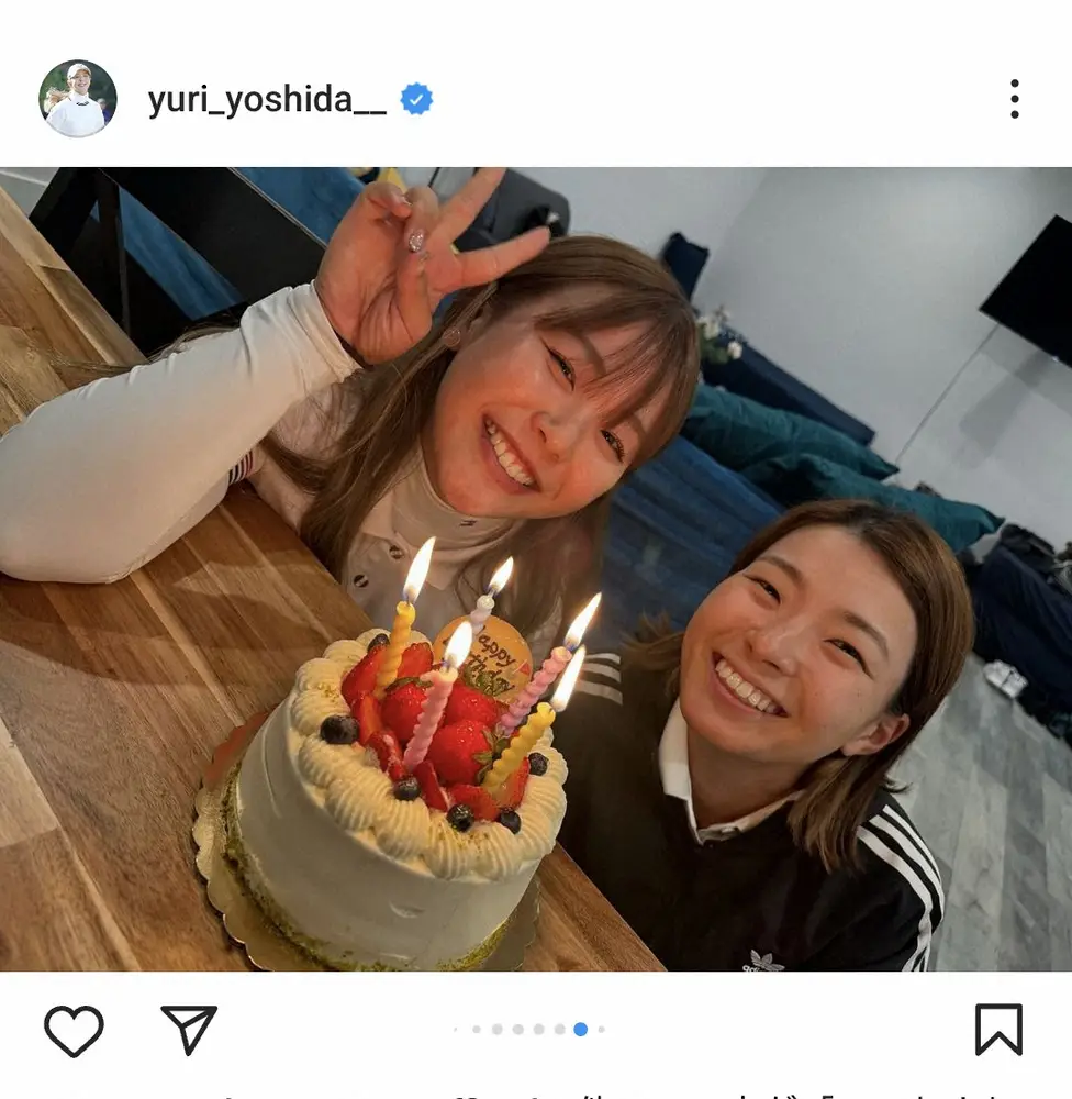 4月に24歳の誕生日を迎えた吉田は渋野がバースデーケーキを手に吉田の元を訪れ祝福する動画をアップ。