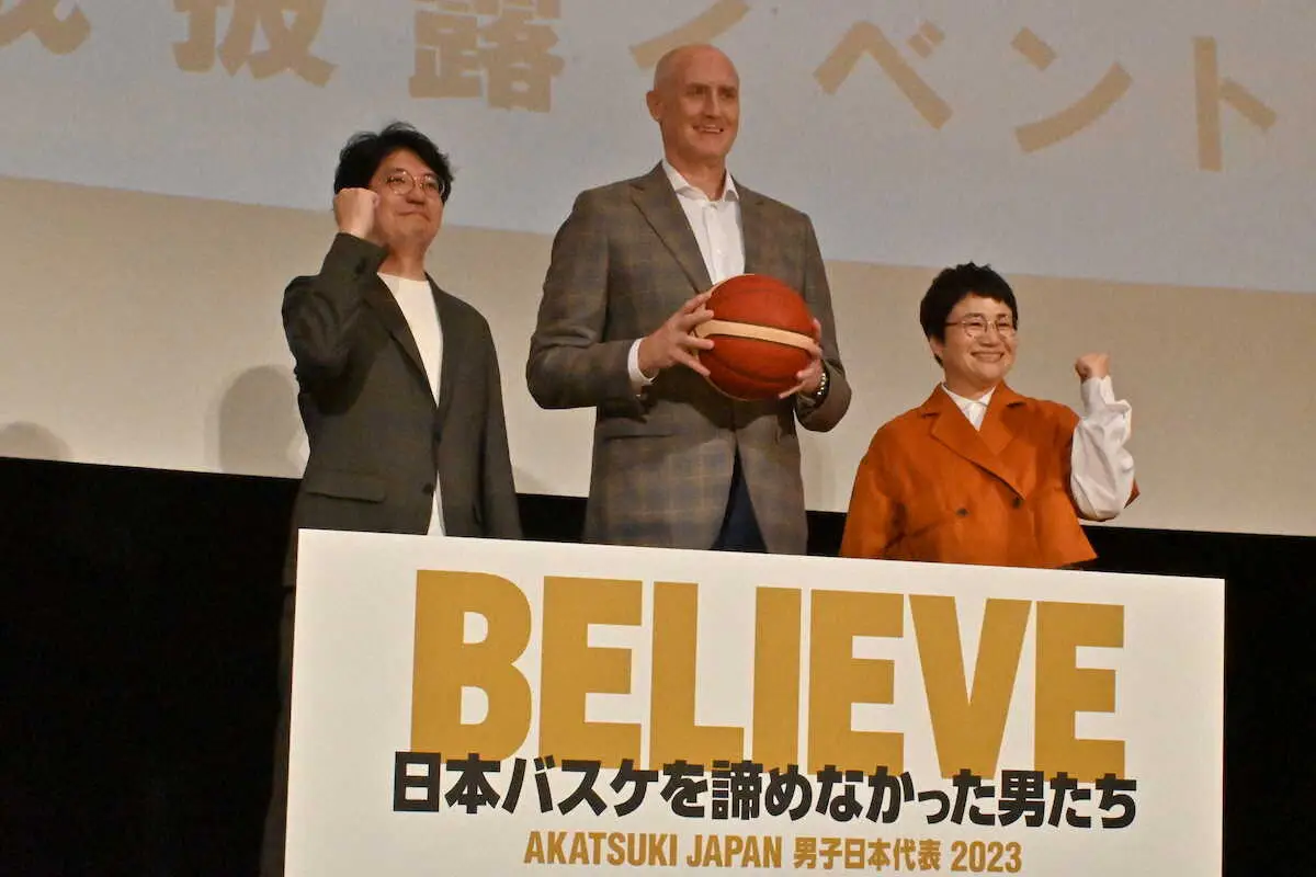 7月26日のパリ五輪開幕まで2カ月を切り、選手強化や選考も大詰めを迎える。ホーバスHCは「世界の皆さんに日本のバスケを見せたい。(目標の8強入りは)チャレンジが高いと思うが、凄く自信がある。信じています。(観客に向けて)信じてください」と要望。最後は大西監督に向けて「来年も(映画を)つくって下さい、ビリーブ2」とパリ五輪での躍進を描いたドキュメンタリー映画第2弾をリクエストした。