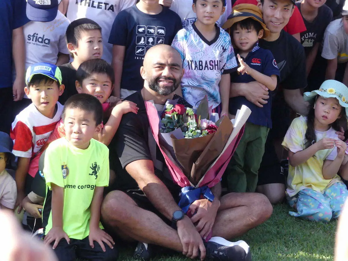 ラグビー日本代表リーチ 22日イングランド戦は「勝ちにいく」 斉藤祐也氏スポーツ教室にゲスト参加
