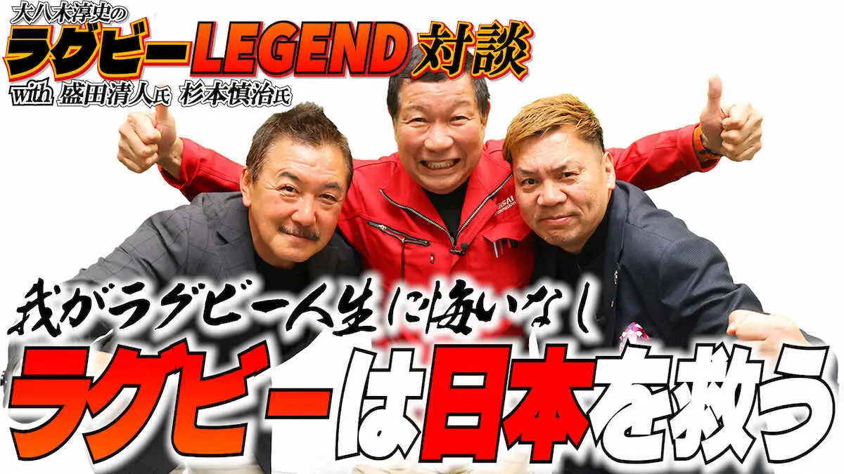 元ラグビー日本代表の大八木淳史氏(62)がゲストを招いてトークする「レジェンド対談」。第4弾は神戸製鋼の7連覇時代に、宿敵・三洋電機(埼玉パナソニックワイルドナイツ)のロックとして活躍した盛田清人氏(60)、神戸製鋼のフランカーとして7連覇に貢献した同僚杉本慎治氏(60)です。第5回は「第2のラグビー人生、ラガーマンのその後」(対談映像はYouTube「スポニチチャンネル」で配信中です)