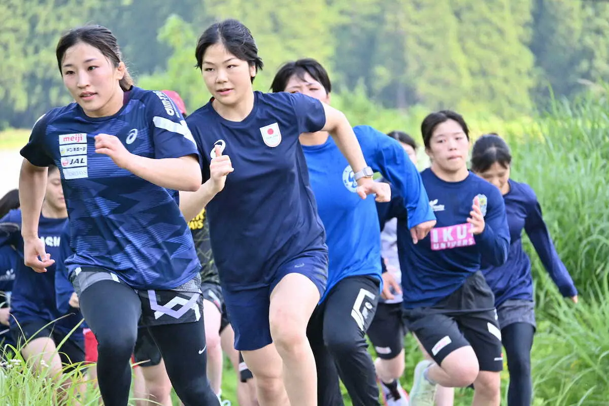 レスリング女子のパリ五輪日本代表が1日、新潟県十日町市の「桜花道場」での強化合宿を報道陣に公開。吉田沙保里さん、伊調馨さんらレジェンドも駆け上がった通称「金メダル坂」でランニングトレーニングを敢行した。