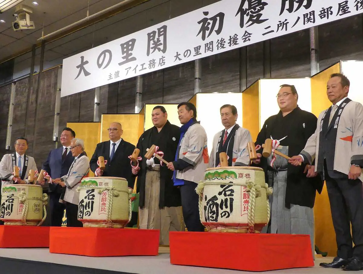 夏場所後に新三役として凱旋する予定だった大の里は「優勝がつくとは想像していなかった。ランクがどんどん上がってうれしい」と笑顔。優勝後初めて地元に凱旋し、この日出席した約550人の後援会や地元関係者らから温かい祝福を受けた。前日の夜に金沢入りし、この日の午前中は金沢市内の避難所を訪れたり、卯辰山相撲場で開催された小中学生の大会「百万石まつり親善少年相撲金沢大会」にサプライズゲストとして登場したりと大忙し。「たくさんの方に“おめでとう”と言われてうれしかった」と英気を養った。
