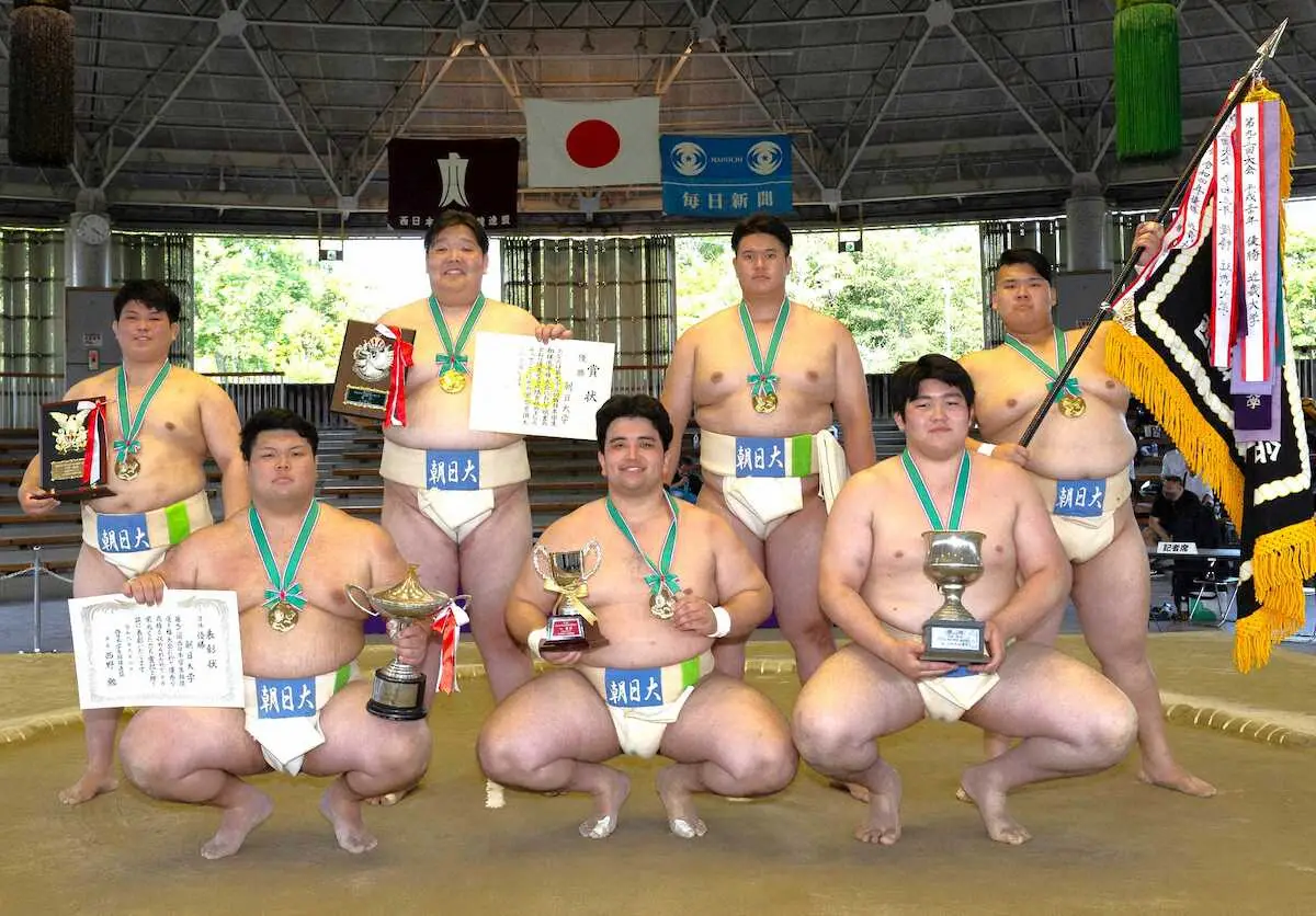 朝日大は初優勝。過去の実績では、現コーチの白塚元久氏(元十両・徳真鵬)を擁した06年の準優勝が最高だった。昨年の全国学生選手権ではAクラス15位に終わっていたが、今年は全国でも上位進出が期待される。