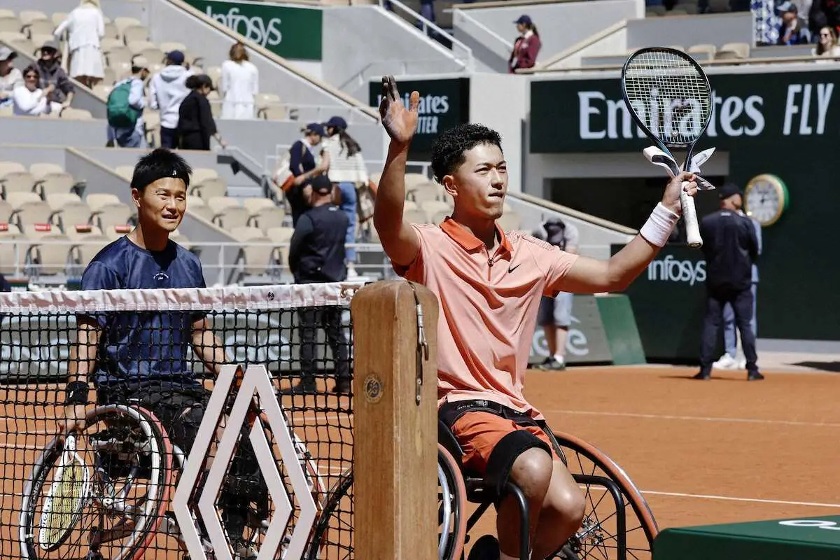 車いすの部は7日にダブルス準決勝が行われ、男子の第2シードの小田凱人(東海理化)三木拓也(トヨタ自動車)組が地元フランスのペアに6―1、6―1でストレート勝ちし、決勝に進んだ。女子の第1シードの上地結衣(三井住友銀行)コタツォ・モンジャニ(南アフリカ)組は田中愛美(長谷工コーポレーション)ダナ・マシューソン(米国)組に6―3、6―2で快勝し、2連覇にあと1勝とした。