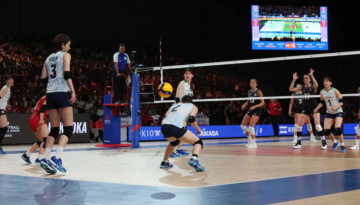 バレーボールのネーションズリーグ女子1次リーグ福岡大会が行われ、世界ランク6位の日本は同10位のカナダと対戦。2-3(25-23、25-22、20-25、21-25、14-16)で逆転負けを喫し、6大会連続五輪出場を決められなかった。