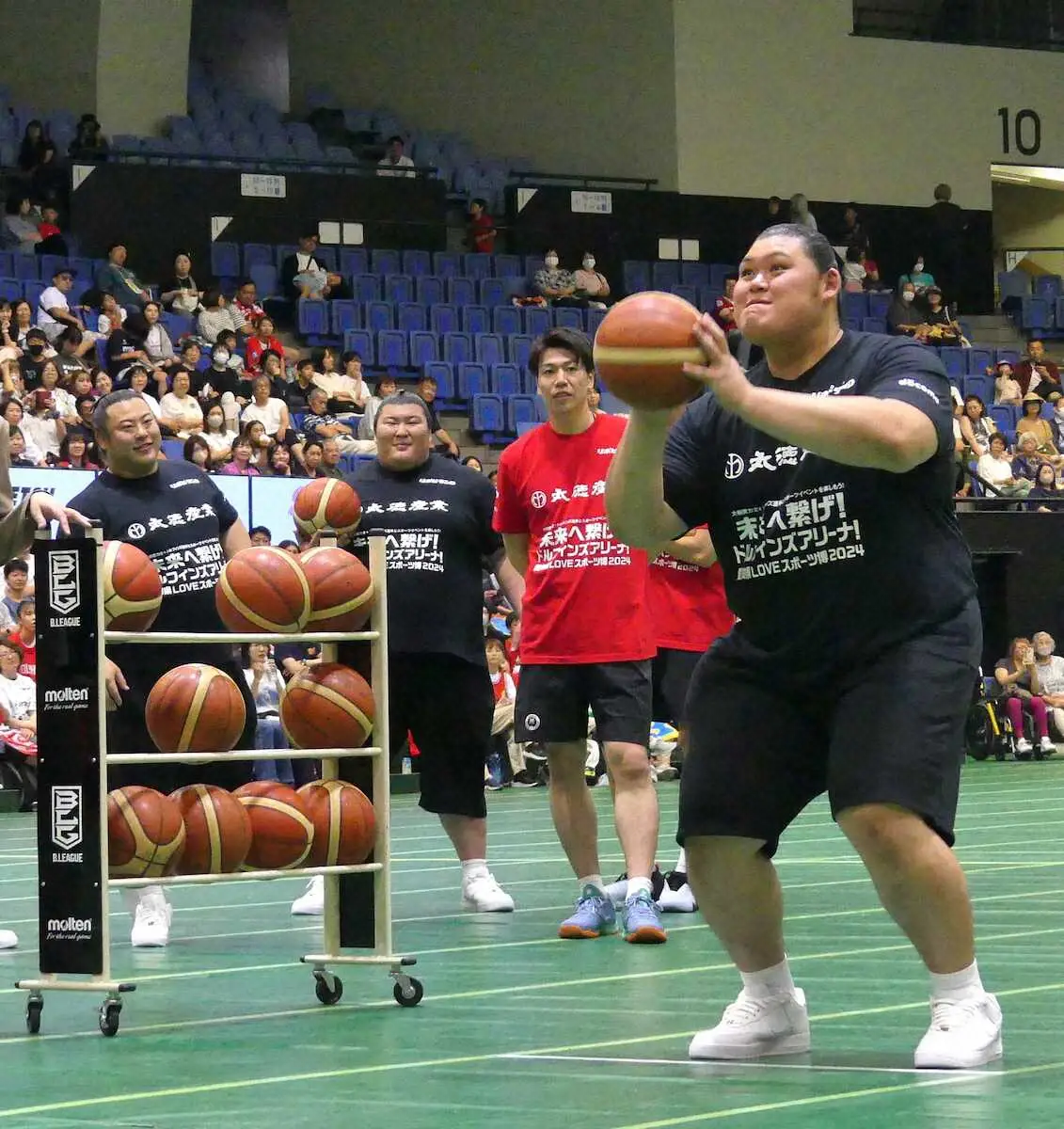 フリースロー対決では力士とバスケ選手がそれぞれペアになり、本職の選手から指導を受けた力士が3本ずつのフリースローで競った。夏場所で史上最速優勝を果たした小結・大の里(24=二所ノ関部屋)は、3本中1本を見事に成功。最後の1本は決めれば勝ちというプレッシャーのかかる場面で外し、頭を抱えて悔しがった。フリースロー対決は翔猿(32=追手風部屋)と翠富士(27=伊勢ケ浜部屋)と3人のサドンデスとなり、最終的に翔猿が勝利を収めた。