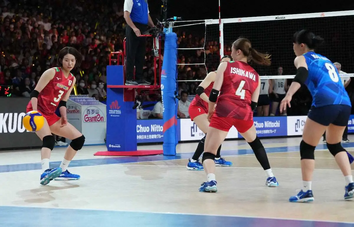 第1セットは序盤から米国の打点が高く強烈なスパイクを処理しきれず苦戦。6―7から石川のスパイク、岩崎のブロックが決まり一時逆転に成功したものの、直後に5連続ポイントを許し突き放された。15―25と大差をつけられた。