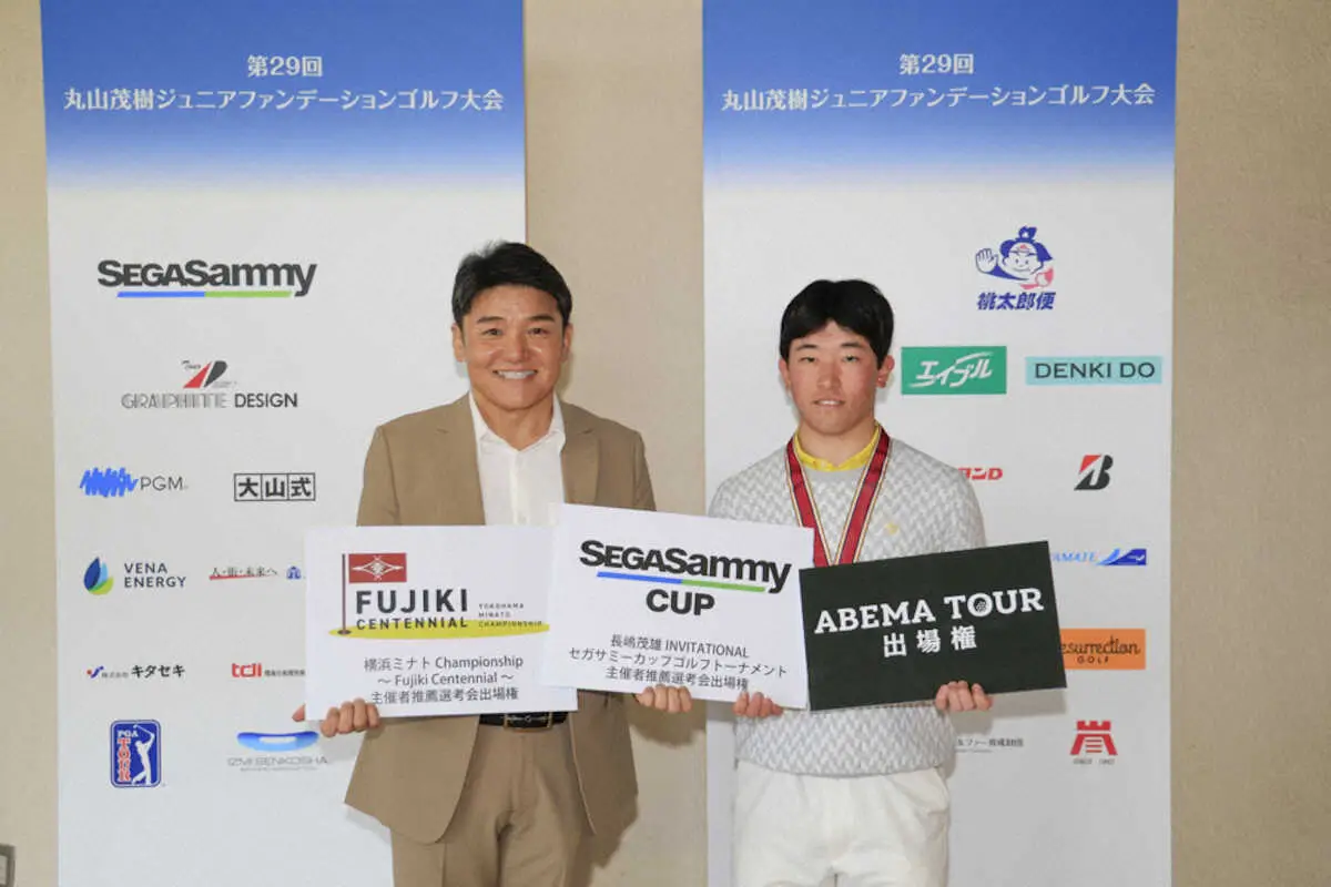 丸山と前回大会で優勝した常盤(丸山茂樹ジュニアファンデーション提供)