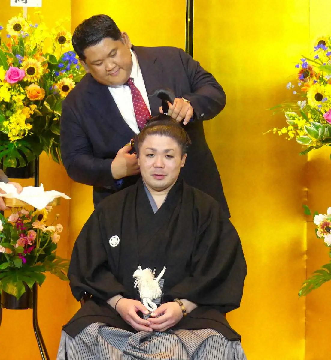 16年間の力士人生に幕を下ろし、師匠の阿武松親方(元幕内・大道)の止めばさみで大銀杏(おおいちょう)に別れ。「断髪式の準備が大変だったので、やっている最中もうまくいくか周りが気になって余裕がなかった」と、涙はなかった。それでも「一人一人から“お疲れ様”と声を掛けられると…」とこみ上げるものもあったようだ。