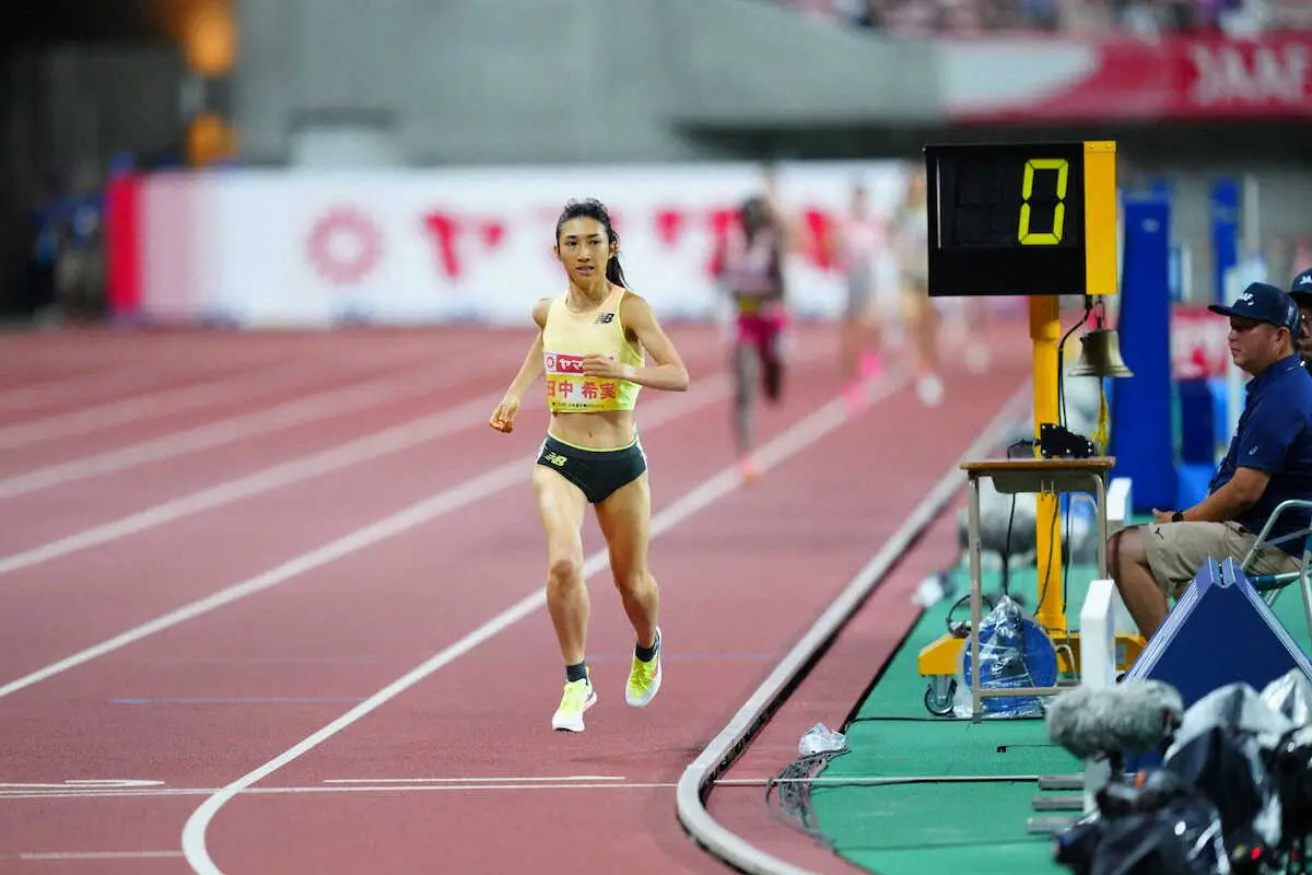 パリ五輪の代表選考会を兼ねて行われ、女子1500メートルで東京五輪8位入賞の田中希実(ニューバランス)が、4分1秒44で貫禄の5連覇を達成した。同種目の5連覇は、06~10年の吉川美香以来、史上2人目で最長タイ。パリ五輪の参加標準記録4分2秒50もクリアし、5000メートルに続いて2種目目の代表をつかんだ。