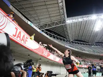 女子やり投げは、昨年の世界選手権女王の北口榛花(JAL)が62メートル87をマークし、2年ぶり4度目の頂点に立った。既にパリ五輪出場権を獲得しているが、本大会開幕1カ月前に拠点のチェコから帰国。夢舞台を前に、世界女王が日本一に返り咲いた。2位は61メートル41で武本紗栄(Team SSP)、3位は60メートル72で上田百寧(ゼンリン)。