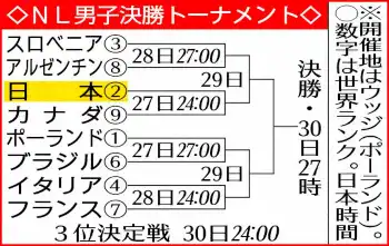 ≪藍はリザーブ≫日本バレーボール協会は27日、ネーションズリーグ決勝トーナメント(27~30日、ポーランド)に出場する男子日本代表14人を発表し、石川祐希、西田有志らが選ばれた。フィリピン大会で負傷離脱した高橋藍は遠征には参加しているがメンバーから外れてリザーブに回った。