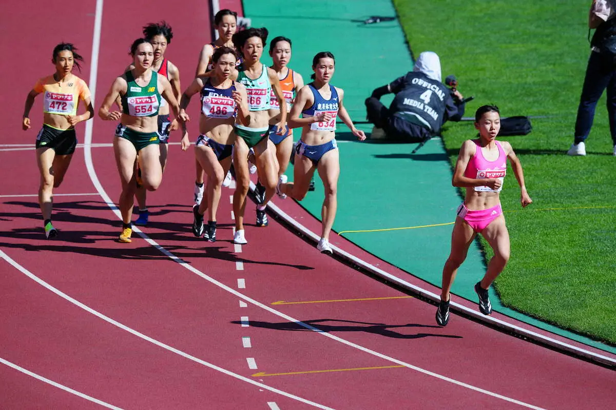 田中希実(ニューバランス)ら強豪がそろった予選3組で、高いポテンシャルを見せつけた。号砲が鳴るとすぐに先頭へ。300メートル付近で田中が2番手に上がってくる展開だったが、トップは譲らない。19、21年日本選手権優勝の卜部蘭(積水化学)、田中の猛追をしのいだ。2分3秒60は3組行われた予選で最速タイムだった。
