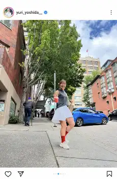 吉田は英語で米シアトルのスターバックス1号店とリザーブロースタリーに出かけたことを明かすと「素晴らしかったです」と感想。グレーのノースリーブのパーカーに白のミニスカート姿で席に座るショットをアップ。