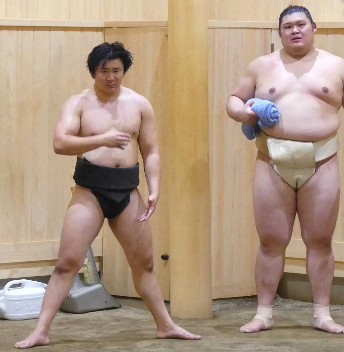 日体大時代に85キロ未満級で2度の全国優勝経験を持つ古田賢悟(23)は、二所ノ関部屋に入門。日体大相撲部同期の関脇・大の里(23)に誘われ、同じ部屋の門を叩いた。大学卒業後は相撲部監督でもある齋藤一雄教授の助手を1年間務め、社会人として大会にも出場。昨年5月の全日本体重別大会シニア軽量級(85キロ未満級)で3位に終わって世界選手権出場を逃すと、プロ入りへの思いが芽生え始めたという。「(大の里は)良い意味で同級生で、目標でもある。いろいろな刺激を受けながら一番良い環境がここだと思った」と入門を決意。今年の夏場所直前から二所ノ関部屋での生活を始めた。