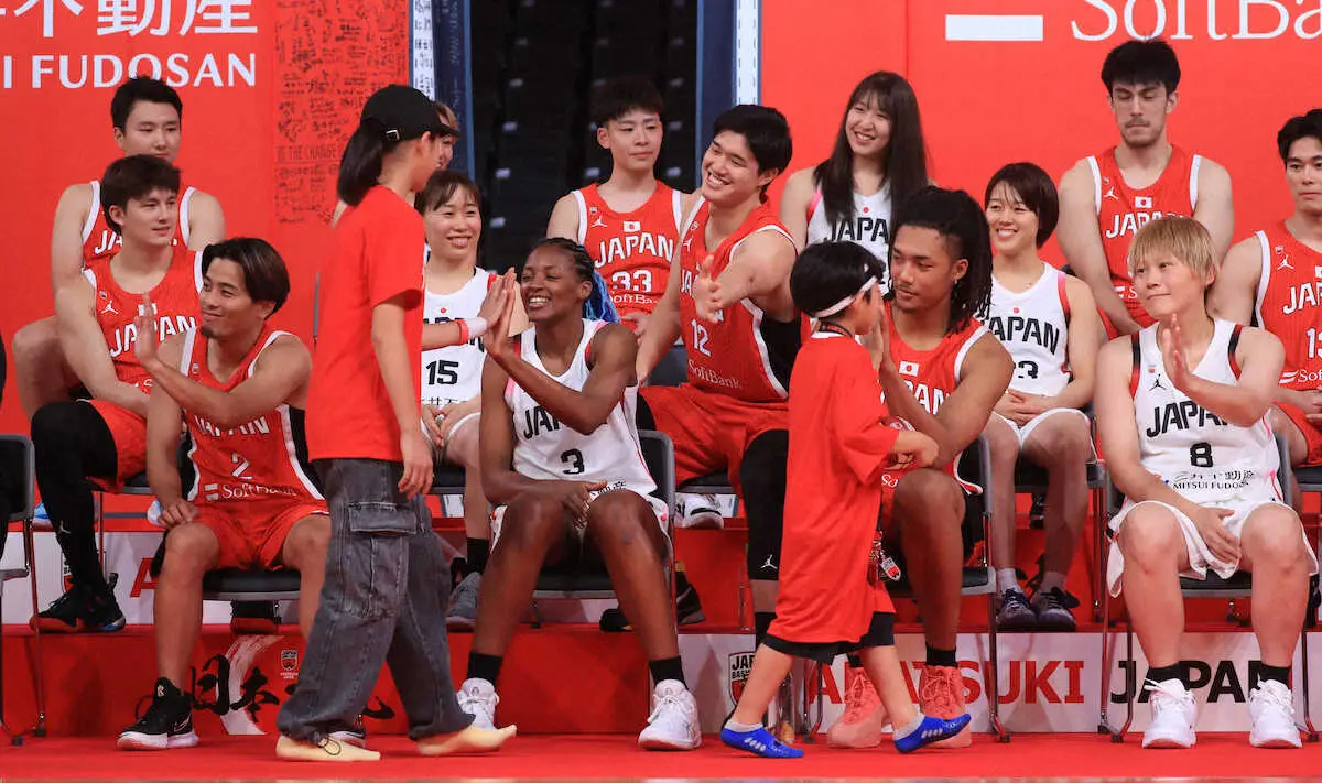 パリ五輪に出場するバスケットボール男女日本代表の壮行イベントが3日、東京・有明アリーナで行われた。