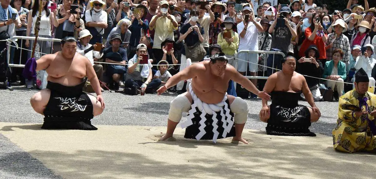大相撲の横綱・照ノ富士(32=伊勢ケ浜部屋)が6日、愛知県名古屋市の熱田神宮で横綱土俵入りを奉納した。露払いに翠富士、太刀持ちに熱海富士を従え約5000人の参拝客の前で不知火型を披露。大きな拍手と「てるのふじ~~」の暑い声援を浴びた。