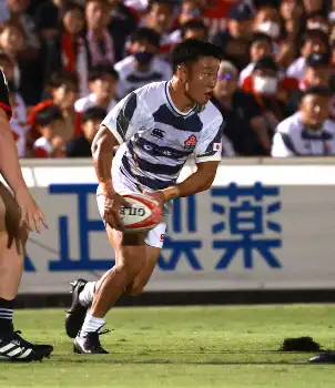 まだ1人少ない状態の後半5分、ラインアウトからモールを10メートル以上押され、フッカーのエクランドにトライを決められて8-7。だが、15人対15人になるとラインアウトからの速い仕掛けで反則を誘い、10分に山沢がPGを決めて11-7とした。さらにNo.8コストリー(神戸)を投入し、矢崎が鋭いカウンターを連発してアタックのテンポを上げると、13分には右中間ゴール前ラックから竹内が飛び込んで18-7とリードを広げた。