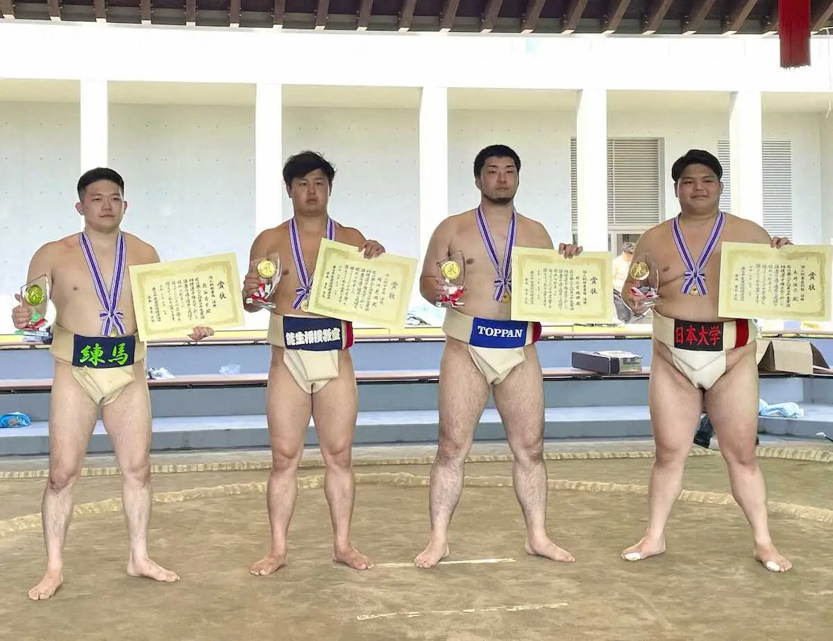 木崎は大学4年時の全国大学選抜宇佐大会準優勝がこれまでの最高実績。自身初のタイトル獲得に「勝って終わるのでうれしいですね」と笑顔を見せた。伯父は日大相撲部の木崎孝之助監督で、幕内・美ノ海(31=木瀬部屋)と元十両・木崎海(木崎伸之助)は従兄弟にあたるという相撲一族。現在は日大職員として働き、学生を指導しながら稽古に励んでいる。「大学生の示しになれるように、恥ずかしい相撲を取らないように」と見事に優勝を果たした。