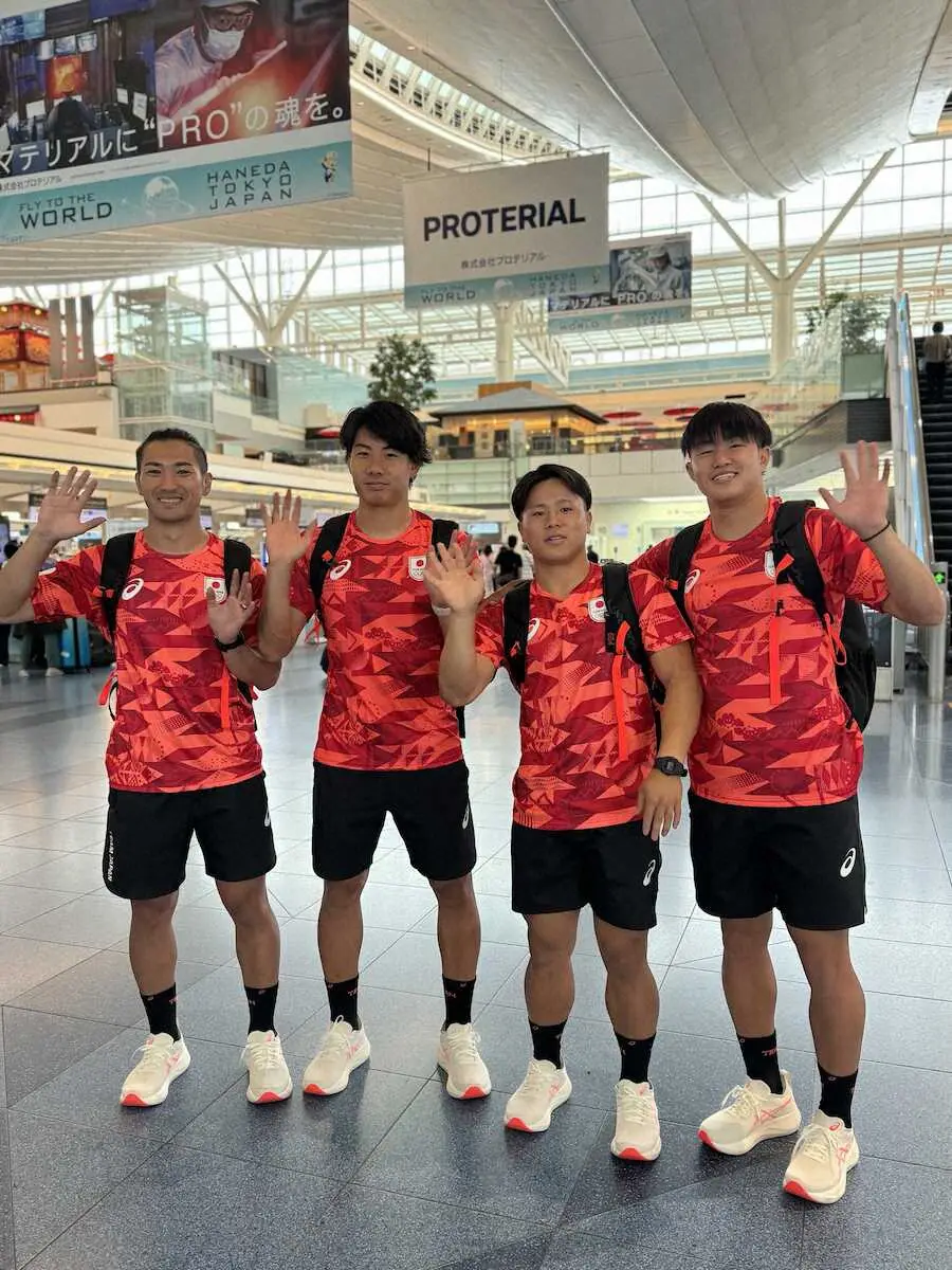 パリ五輪に向けて羽田空港から出発した7人制ラグビー男子日本代表の石田吉平主将(左端手前)ら Photo by スポニチ 【セブンズ】石田吉平主将「結果にこだわる」リオ五輪の金星再現からメダ… ギャラリーで見る この記事のフォト 2024年07月12日の画像一覧 もっと見る 2024年07月12日の画像をもっと見る