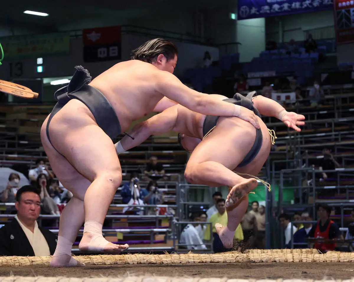 立ち合い頭で当たり合い、押し込まれたところでタイミングよく右からいなして上手出し投げを打つと相手は右足を踏み越した。「思い切り当たって何でもやろうと、体が勝手に動いた」。幕内経験者を相手に、東日本学生体重別135キロ以上級3位の実績を持つ期待の新弟子が力を見せた。