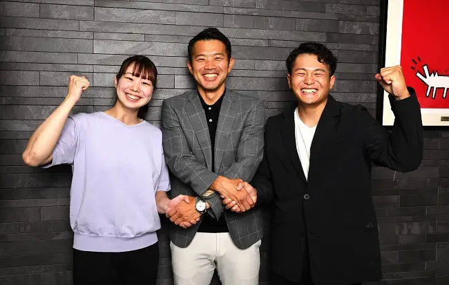 (左から)青栁未愛選手、ケーダッシュセカンドの小柳崇氏、三島遊選手
