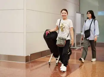 米女子ゴルフツアーのエビアン選手権でメジャー初制覇を果たした古江彩佳(24=富士通)が16日、フランスから羽田空港に帰国した。Tシャツ姿で到着ロビーに姿を見せ、喜びを語った。