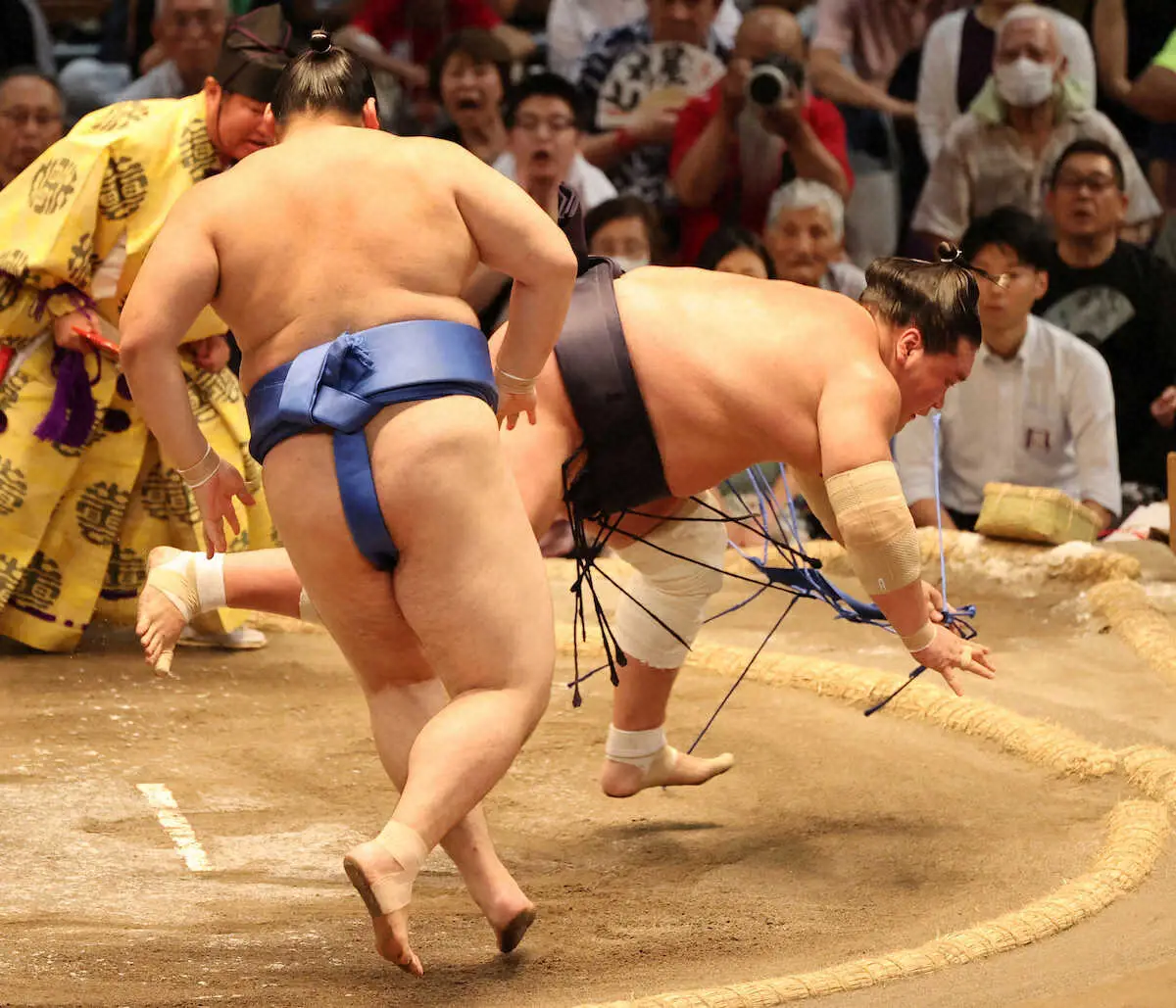 同じく“崖っ縁”のカド番大関・貴景勝は西前頭3枚目・豪ノ山を突き落として白星。5勝目を挙げるもあすは大の里との対戦で、厳しい状況は続く。