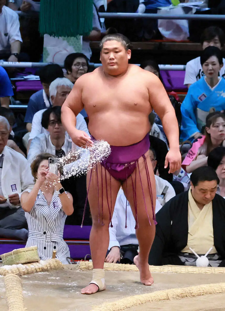 尊富士は、110年ぶりの新入幕優勝という歴史的偉業を果たした春場所で右足首靱帯を損傷し、夏場所は全休。史上最速優勝からわずか1場所という史上最速で十両に転落した今場所は、初日に間に合わず8日目から出場した。2日とも圧倒的な強さで2連勝。関取残留が確実となる勝ち星を挙げていた。
