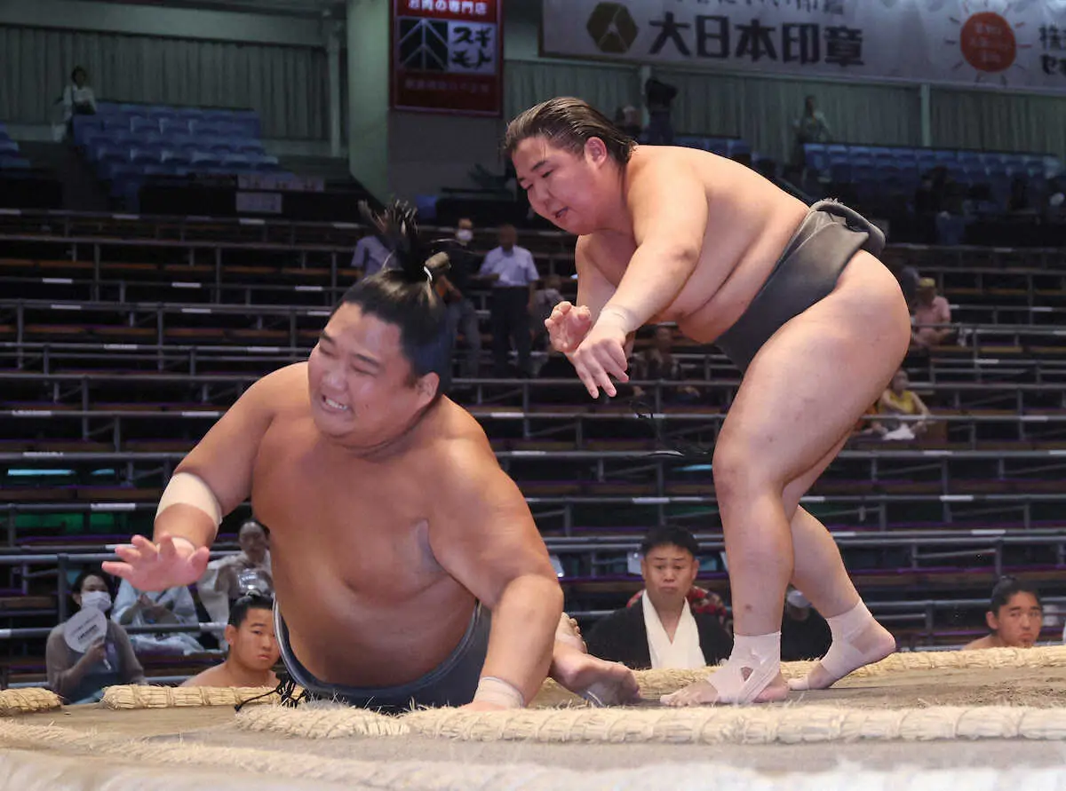 敗れれば、6勝1敗で並ぶ炎鵬(29=伊勢ケ浜部屋)と良ノ富士(19=伊勢ケ浜部屋)と3人での優勝決定巴戦へもつれ込むという状況。「なんとしてもここで決めたかった」とこの一番に懸けていた。