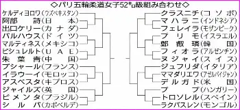 覚悟の上とはいえ、あらゆる可能性で最も厳しい組み合わせとなった。1回戦では長野出身の出口ケリー(カナダ)と対戦。勝てば続く2回戦では世界ランク1位で世界選手権は2年連続2位のケルディヨロワと当たることとなった。ブシャールとは準決勝で対戦。決勝は48キロ級の東京五輪女王クラスニチ(コソボ)との激突が有力だ。