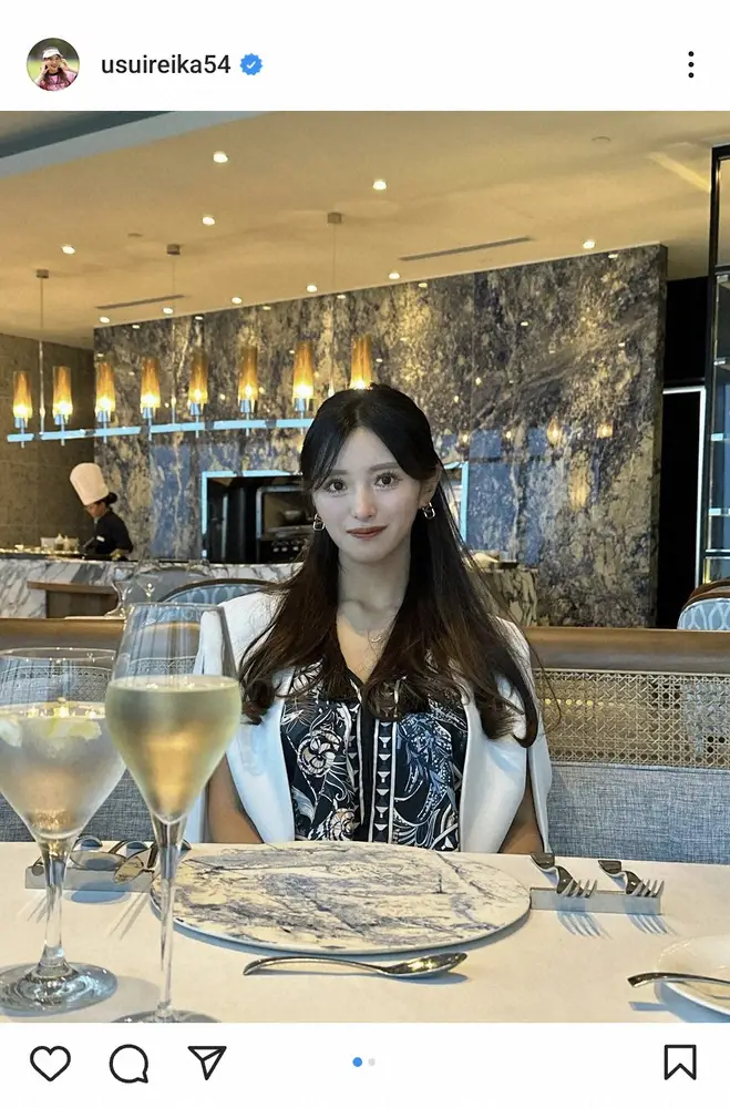 臼井麗香 オシャレファッションでの休日ディナー満喫ショットに「大人の色気 素敵!」「女優ジャン」