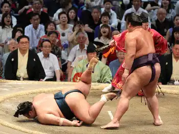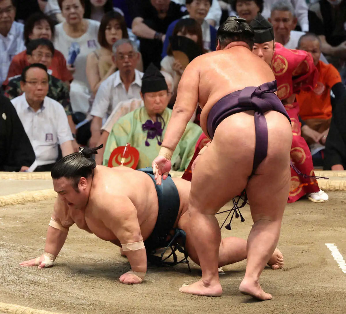 西前頭5枚目の湘南乃海(26=高田川部屋)と対戦。立ち合い思い切ってぶちかましてていったが、相手に右へ変わられると足がついていかず腹ばいに落ちた。一瞬で勝敗が決し、不完全燃焼かと問われると「別にそんなことはない」と否定。自身9度目のカド番で臨んだ15日間を戦い終えた。