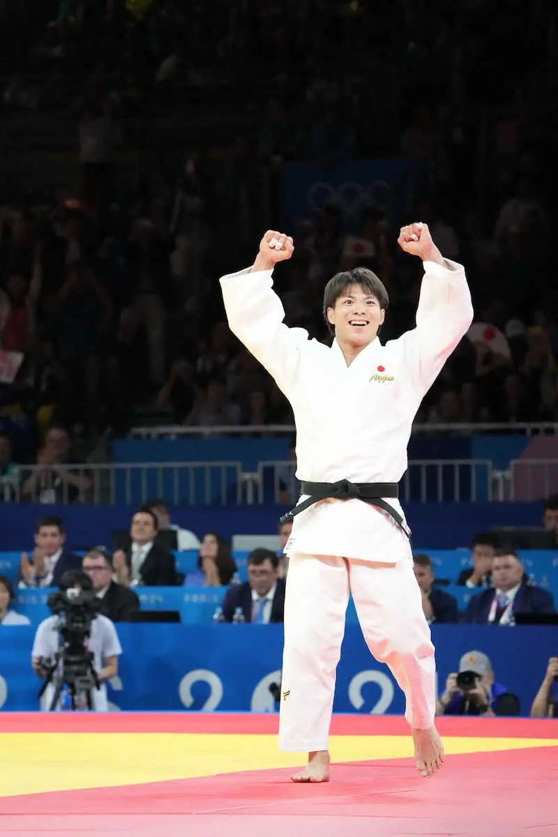 <パリ五輪柔道>男子66キロ級決勝、金メダルの阿部一(撮影・岡田 丈靖)