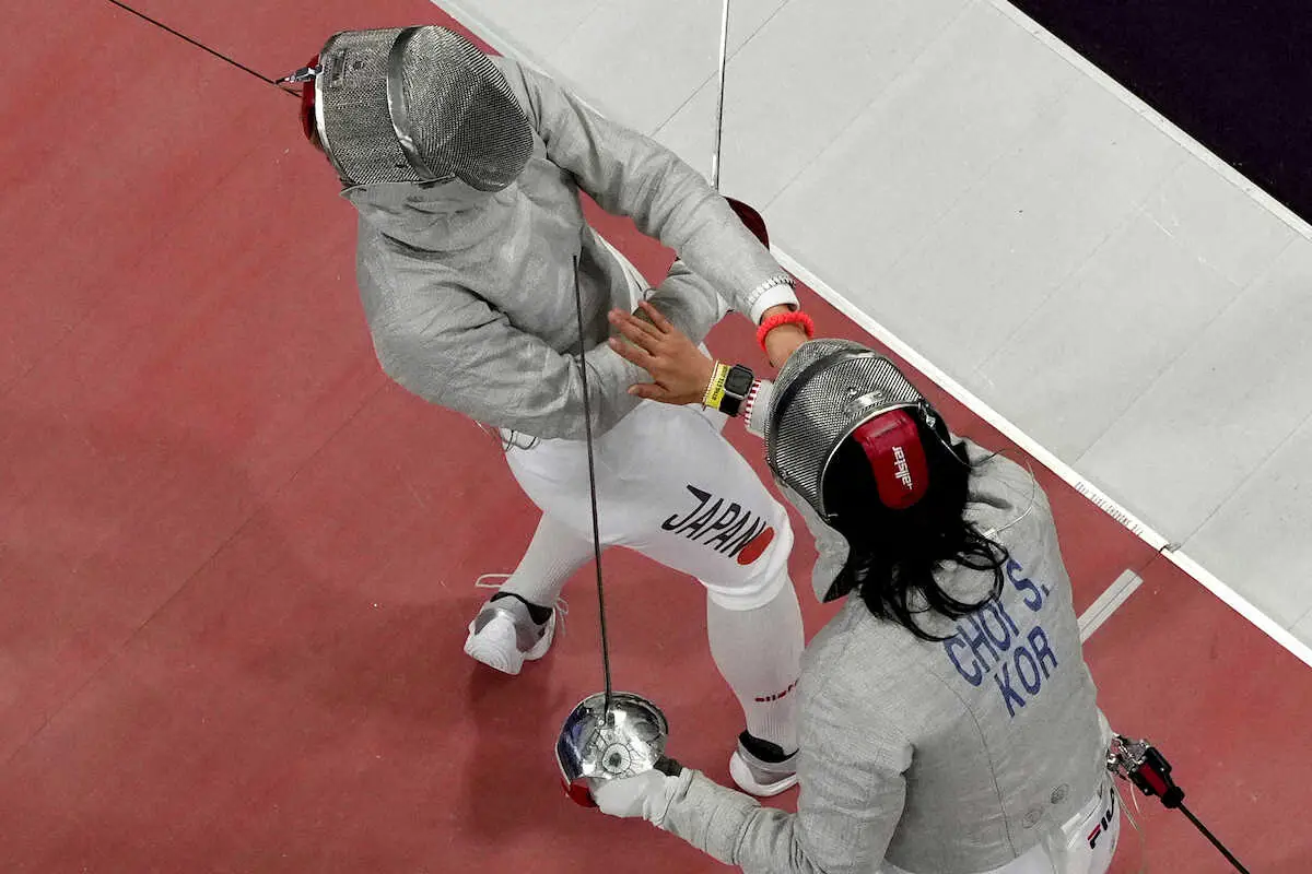 フェンシング女子サーブル個人が29日、グランパレで行われ、世界選手権2連覇中の江村美咲(25=立飛ホールディングス)は3回戦で崔世彬(23=韓国)に7―15で敗れ、メダルの可能性が消えた。