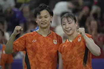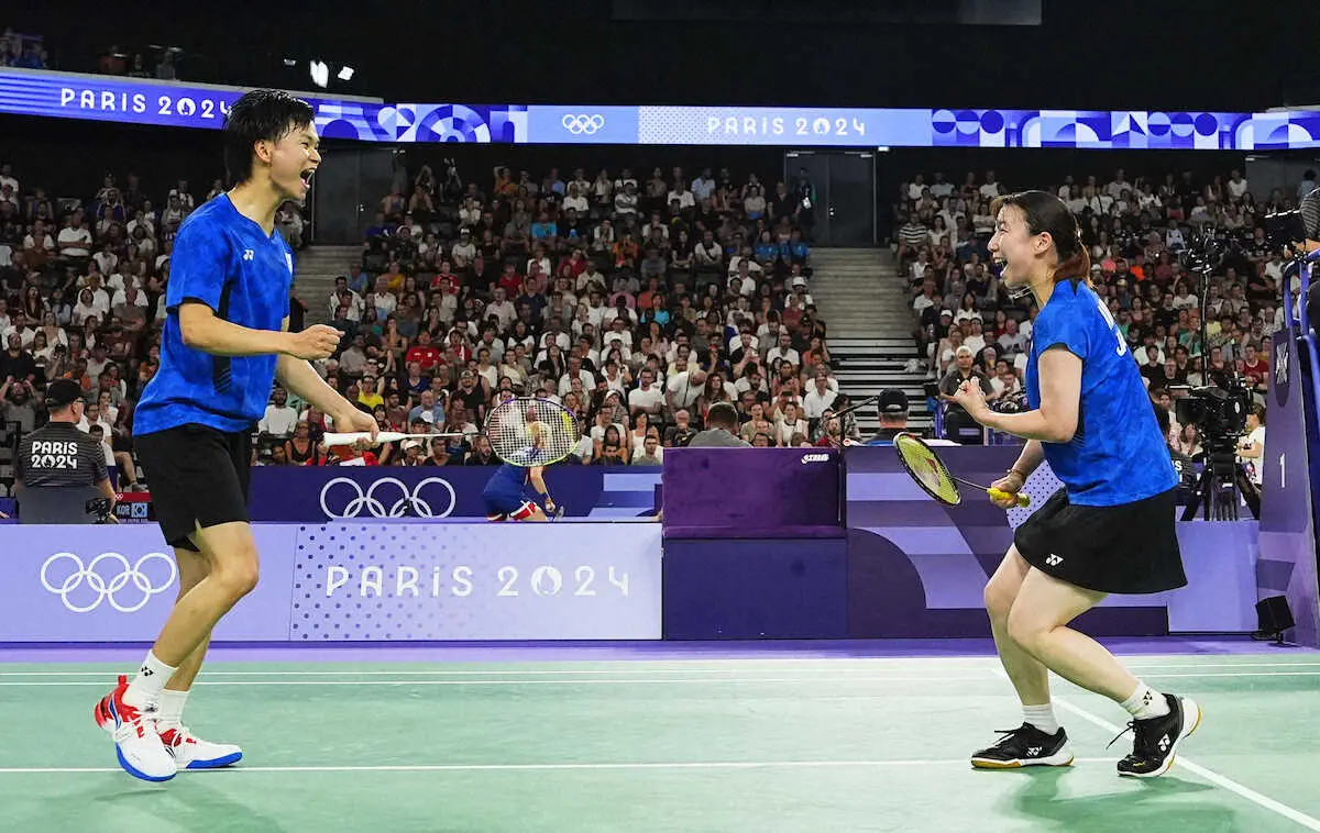 バドミントン混合ダブルスの準々決勝が行われ、東京五輪銅メダルペアの渡辺勇大・東野有紗組(BIPROGY)が、デチャポン・プアバラヌクロ、サプシリー・タエラッタナチャイ組(タイ)に23―21、21―14でストレート勝ちし、準決勝進出を決めた。バドミントンでは日本勢初の2大会連続メダルに王手を掛けた。