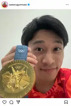 体操平行棒・谷川航 団体での“金メダル”との自撮りショットを投稿「応援よろしくお願いします」
