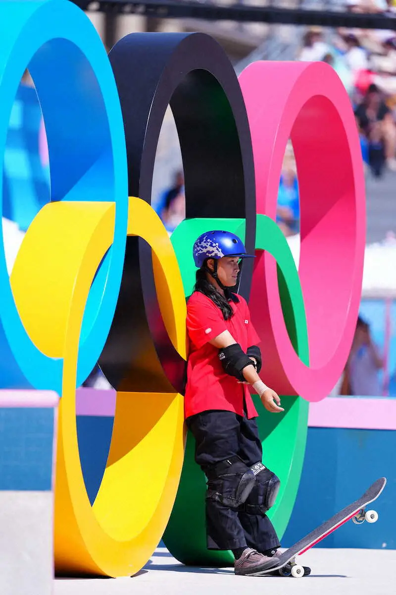 <パリ五輪 スケボー女子パーク予選>予選に臨む四十住(撮影・小海途 良幹)