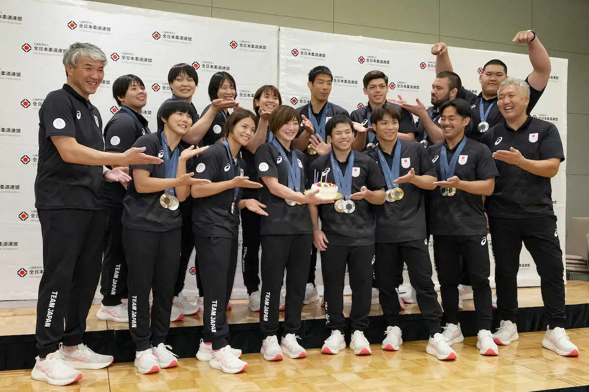 パリ五輪の柔道日本代表選手団が6日、パリから羽田空港着の航空機で帰国し、都内のホテルで会見を行った。女子48キロ級で金メダルを獲得し、日本選手団のパリ五輪メダル1号となった角田夏実(つのだ・なつみ、32=SBC湘南美容クリニック)は「前回の五輪は帰国の様子もテレビで見て悔しい思いをしたけど、今日はこの場に立つことができてメダルを持って帰ることができてうれしく思ってます」と振り返った。