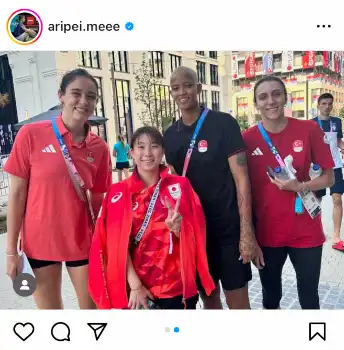パリ五輪バドミントン混合ダブルス銅メダルの東野有紗(28=BIPROGY)が6日、自身のインスタグラムを更新。選手村でのスター選手との遭遇を報告した。