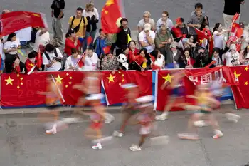 競歩混合団体を応援する中国の応援団(AP)