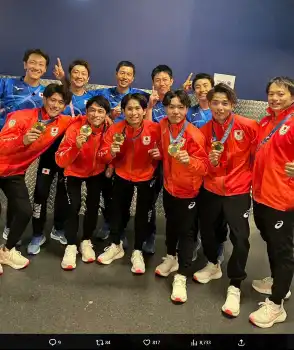 「素晴らしい選手、役員と共に戦い、金メダル獲得をはじめ様々な経験ができたことは僕にとって一生の宝物です」とし、男子メンバーとの記念ショットを公開。