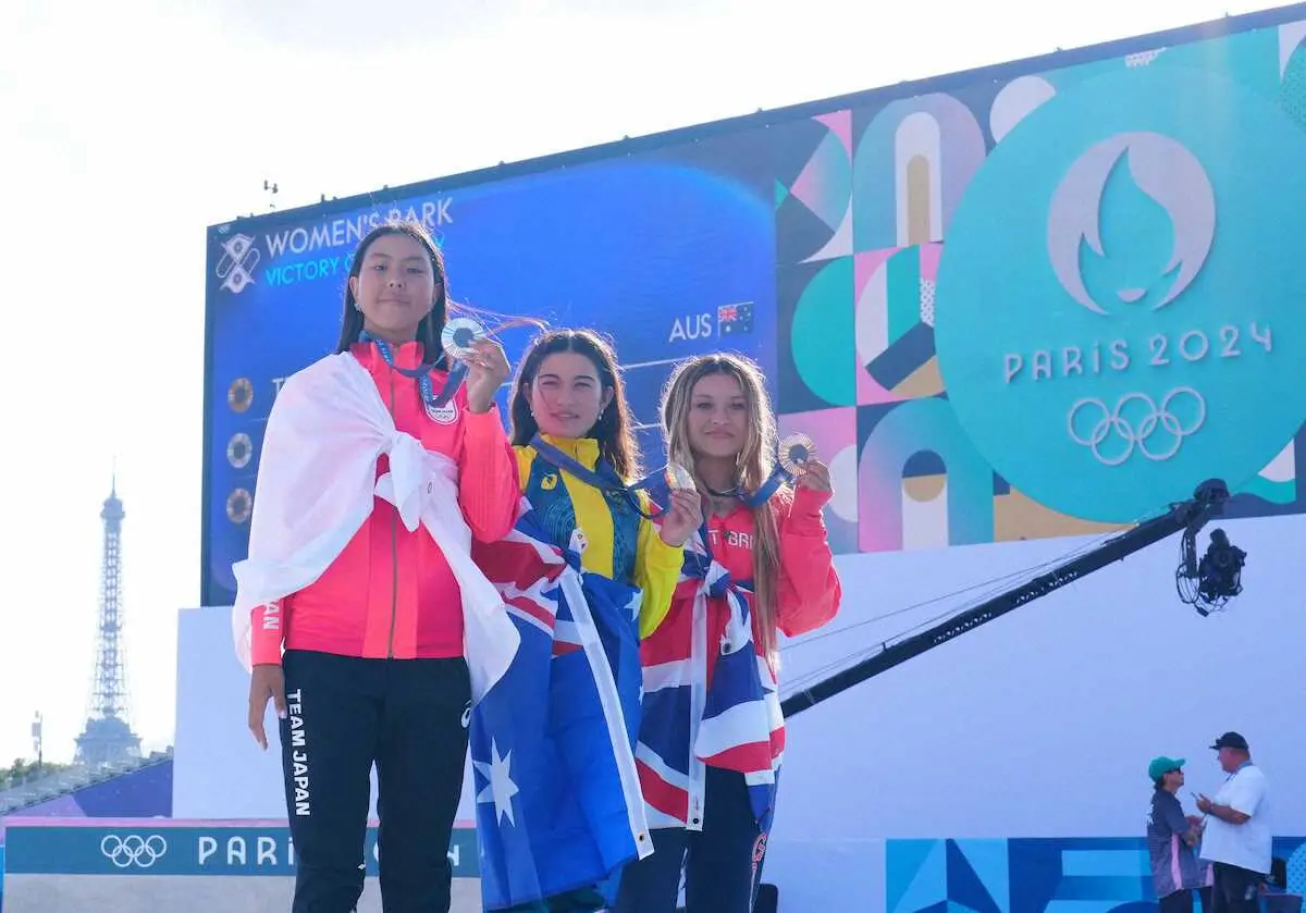 決勝では3位につけていた最終3本目にフルメークを達成して大歓声を浴び、逆転で銀メダルを獲得。12歳11カ月の史上最年少で銀メダルを獲得した21年東京五輪は無観客開催だったため、「今回のパリは観客がたくさん入って盛り上がっていて、本物の五輪を体験した感じです」と振り返った。「東京に続いてまた銀であと一歩で金メダルを取れなかったのは悔しいけど、自分の出したかったランをできてうれしいです」と充実感をにじませた。