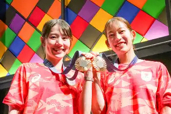 志田千陽(27)、松山奈未(26=ともに再春館製薬所)組は同種目の日本勢では12年ロンドン大会銀の藤井瑞希、垣岩令佳組、16年リオデジャネイロ大会金の松友美佐紀、高橋礼華組に続くメダルを獲得。今後は取材などスケジュールが多忙だという。志田は「すごく忙しくなるのかなって感じ。そういう部分ではメダリストになったんだっていう実感もある。日本は暑くて、ここで過ごしていけるのか」と笑顔で語った。