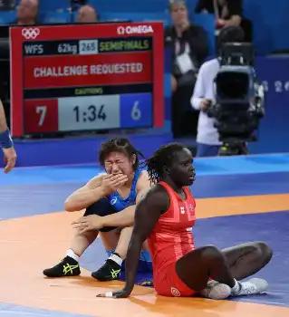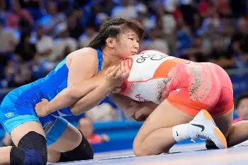 <パリ五輪 レスリング>観客席からエールを送る藤波朱理(中央)(撮影・平嶋 理子)
