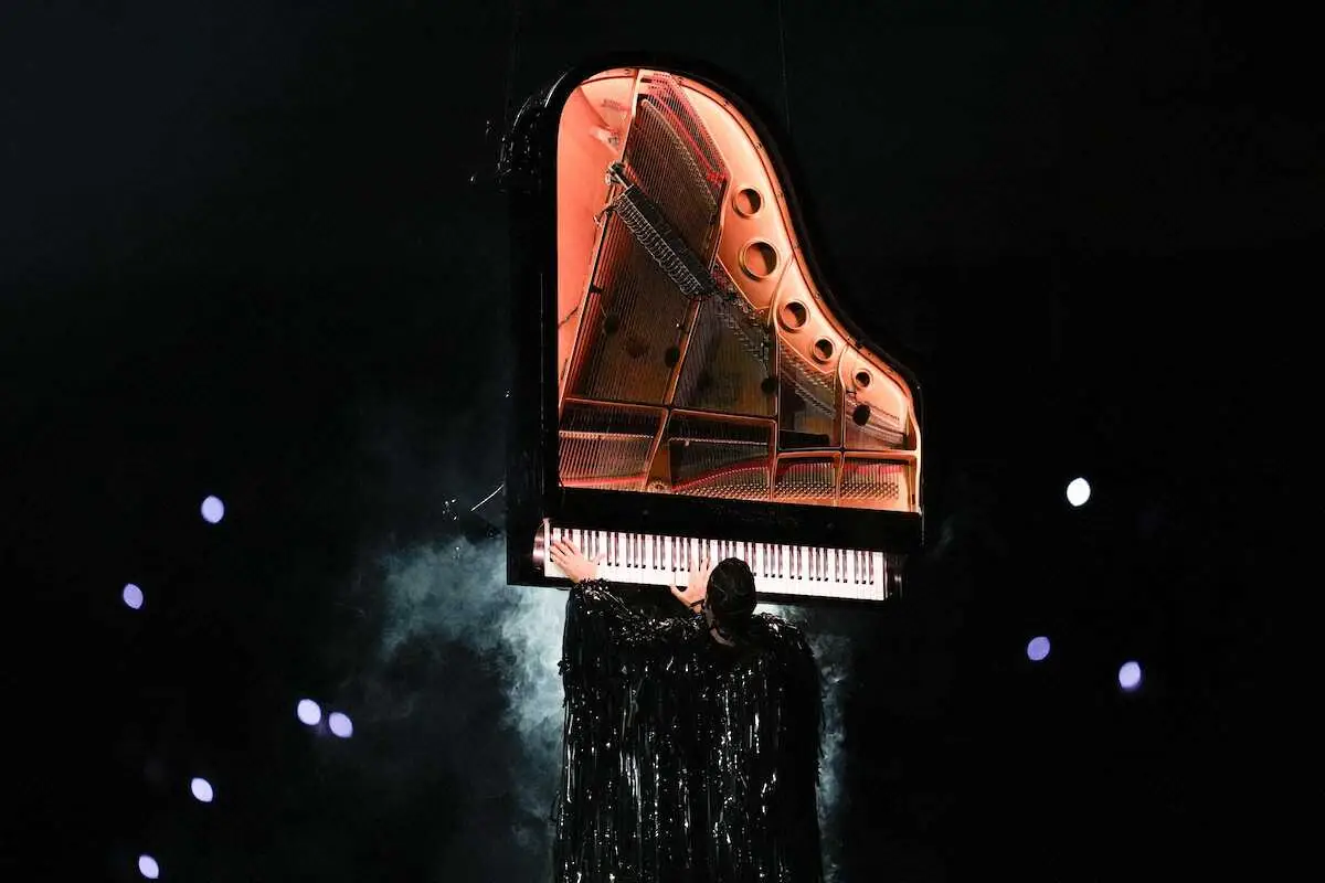 パリ五輪閉会式 ピアノ“上空演奏”の演出にネット衝撃「縦のまま弾くの?」「どどどどどうやって?」