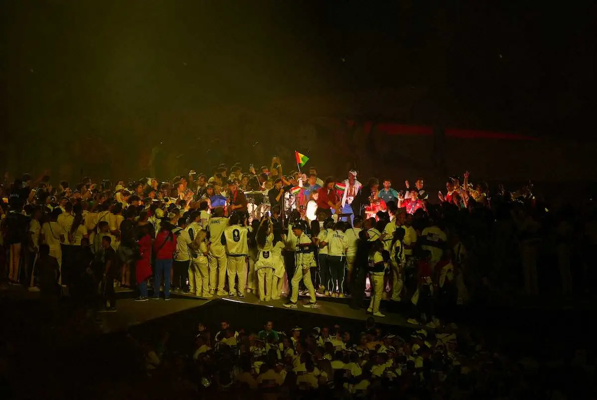 パリ五輪の閉会式が11日(日本時間12日)、フランス競技場で行われ、「パーティー」と題された演奏ステージ上に選手たちが大勢上がり、何度も注意アナウンスが流れる場面があった。