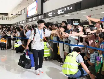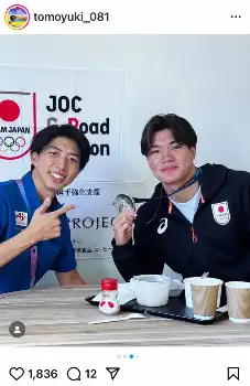 8日、金メダルを胸に帰国した萱和磨