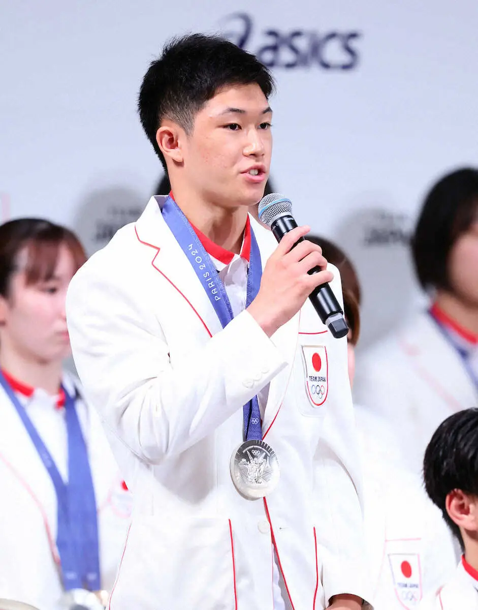 パリ五輪で海外での五輪では史上最多となる45個のメダルを獲得した日本選手団の帰国会見が14日、東京都内のホテルで行われた。