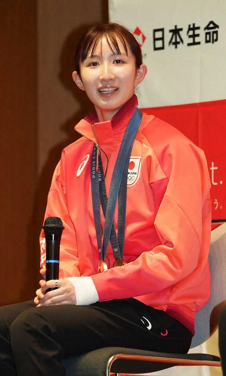 卓球女子シングルスでパリ五輪銅メダルの早田ひな(24)が20日、都内で行われた所属の日本生命の報告会に出席した。個人戦で左手首付近を負傷しながら団体の銀メダルにも貢献し「思い出しただけで涙が出ちゃう」と声を震わせ「たくさんの方に助けていただいた。やり切った気持ちが大きい」と感謝を述べた。